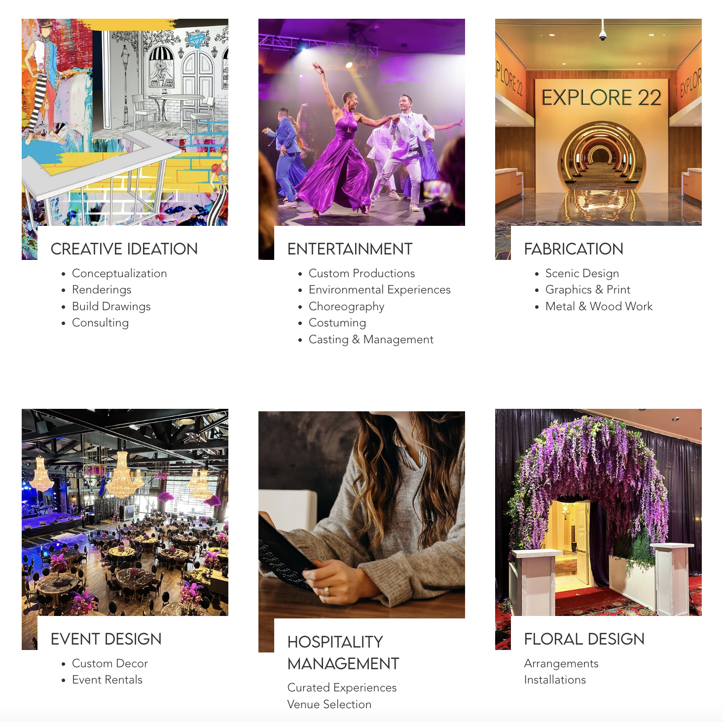 Entertainment: With custom productions, choreography, costuming, and casting, their entertainment services are designed to mesmerize (BUZZ). Think of grand entrances where performers greet guests, or costumed dancers who bring themes to life through their routines.